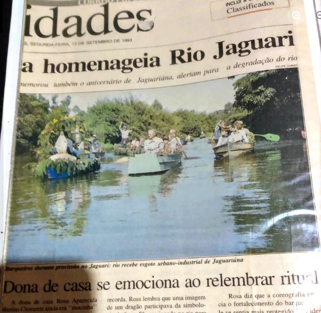 Lembrava-se, também, da procissão de barcos, resgate de uma procissão que era realizada por antigos moradores pelo rio Jaguari, e do contato que ela tivera com essas pessoas maravilhosas que se dispuseram, muito orgulhosas e felizes, a participar e colaborar para que essa atividade fosse um sucesso e se repetisse mais vezes