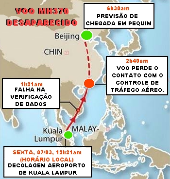desaparecida faz três dias. O voo MH370 da Malaysia Airlines decolou do
