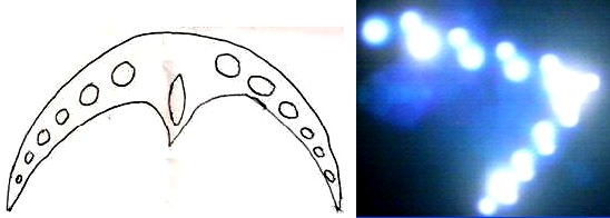 Duas imagens encontradas pela testemunha na internet são muito semelhantes ao que viu, com algumas pequenas diferenças: as luzes eram laranjas (nesta imagem aparecem em azul) e o objeto era totalmente em forma de bumerangue sem as saliências internas mostradas no outro desenho.
